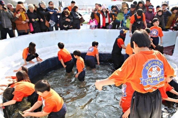 Only 20 km away from the North Korean border is Hwacheon County. There, one of the top winter festivals of the world takes place. At Sancheoneo Ice Fest you can catch fish through a hole drilled in the frozen river. After successful fishing, we will hand the fish over to the chef’s desks and get them cooked to have a grub on it.